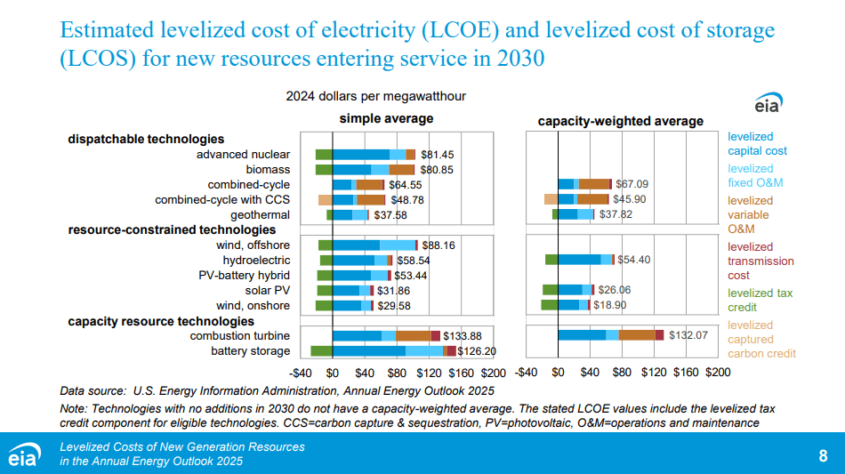 On page 8 of the report, after resources enter in 2030, there are some issues that appear to be set up for higher prices. “Levelized Captured Carbon Credits” really needs to go away, as carbon capture is really not capturing pollution, but a wealth transfer in my opinion. Natural Gas and Coal plants that have scrubbers and capture particulate matter and harmful gases are actually better for the environment when you calculate in the amount of fossil fuels used in building the wind, solar, and additional grid improvements just to get them on the grid.